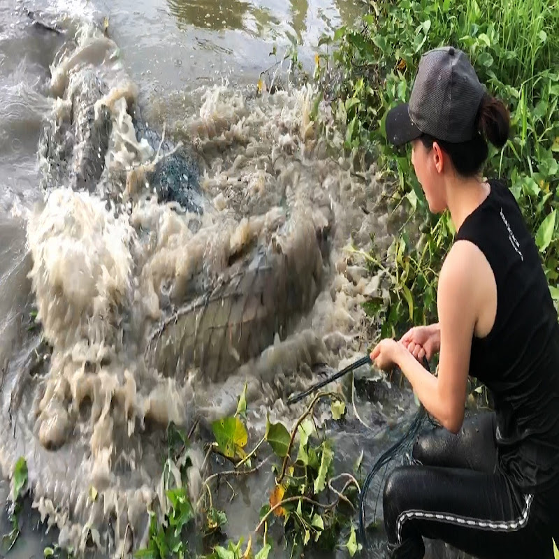 Trapping huge eel fish with survival skills