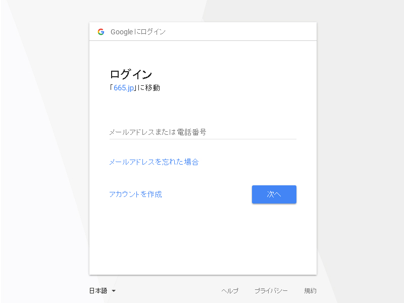 掲載申込申請ボタンを押すと下記のような表示が現れますので、お持ちのGoogleアカウントのIDとパスワードを入力し認証を行って下さい。もし、Googleアカウントをお持ちでない場合は こちら のリンク先でアカウント作成を行ってください。