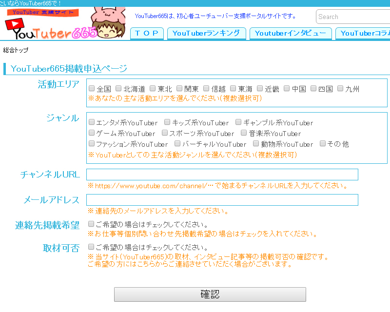 2.YouTuber665・掲載申込の入力事項